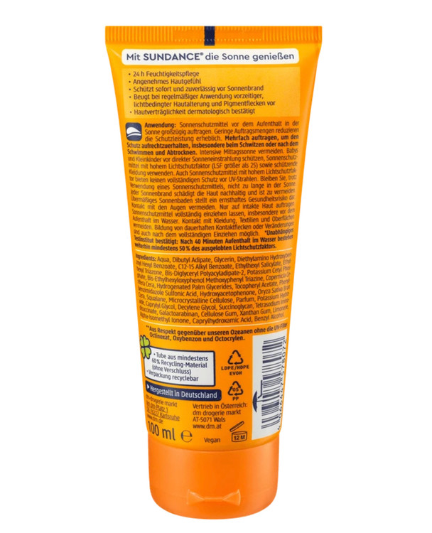مدل این کرم sonnencreme بوده و ارائه شده در حجم 100 میلی لیتر می باشد.این محصول دارای اس پی اف 50 است که به نسبت ضدافتاب سام دنس اس پی اف 30 محافظت بسیار قوی تری در برابر آفتاب دارد. این محصول گیاهی مناسب برای انواع پوست نرمال ،خشک ،چرب و یا مختلط می باشد. کرم ضد آفتاب سان دنس تمام ضررهای ناشی از آفتاب را از بین می برد و به عنوان یک ضد آفتاب قوی از پوست شما در برابر اشعه های مضر UVA و UVB محافظت میکند.