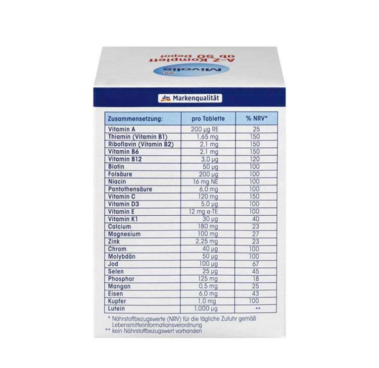 قرص مولتی ویتامین کامل A-Z بالای 50 سال میولیس 100 عدد