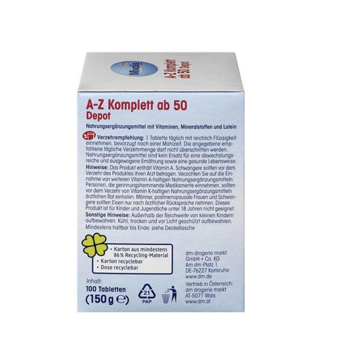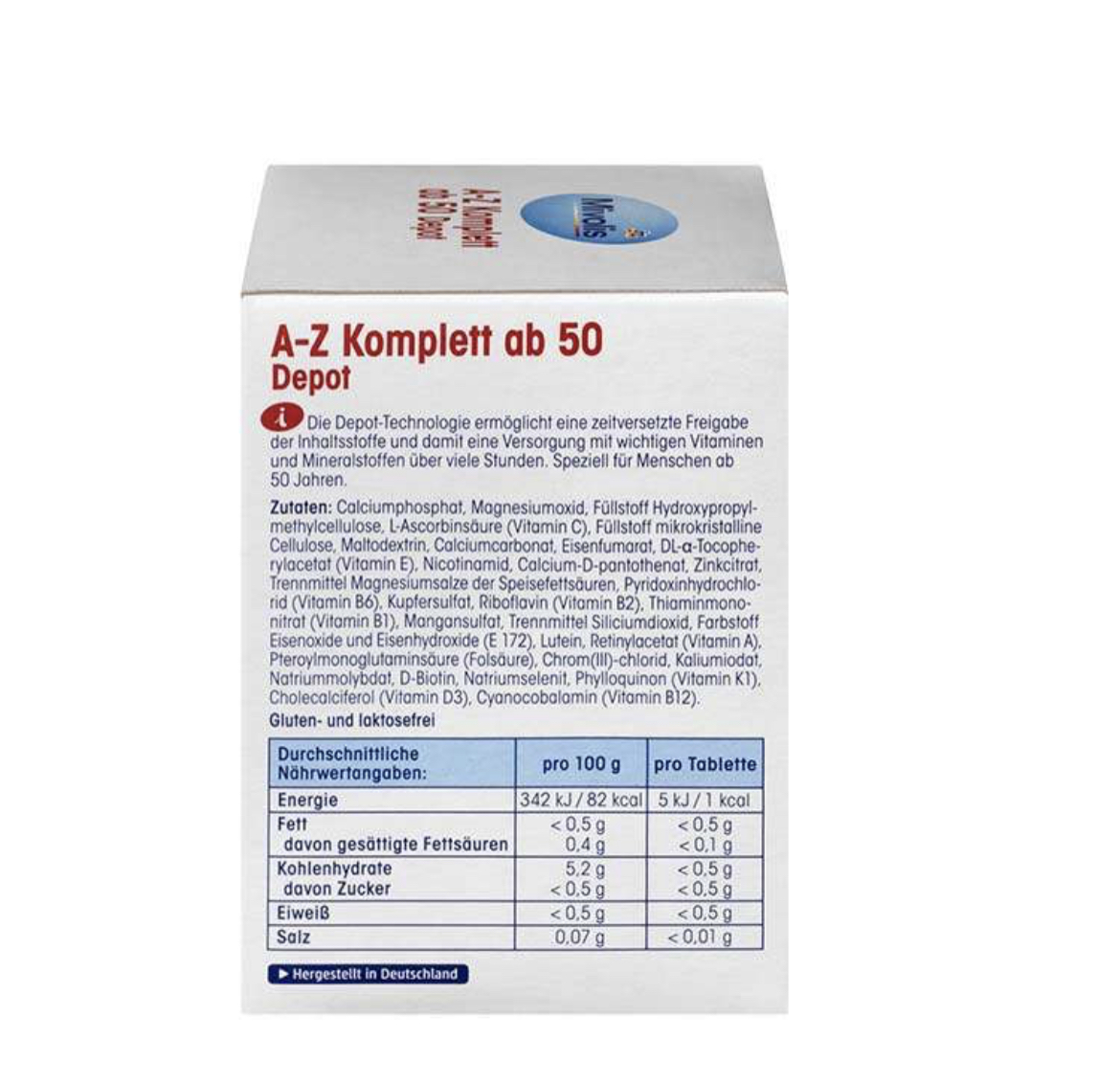 قرص مولتی ویتامین کامل A-Z بالای 50 سال میولیس 100 عدد