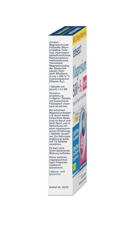 منیزیم (500 میلی گرم): مینرال ضروری برای تولید انرژی، عملکرد عضلات و سیستم عصبی.
