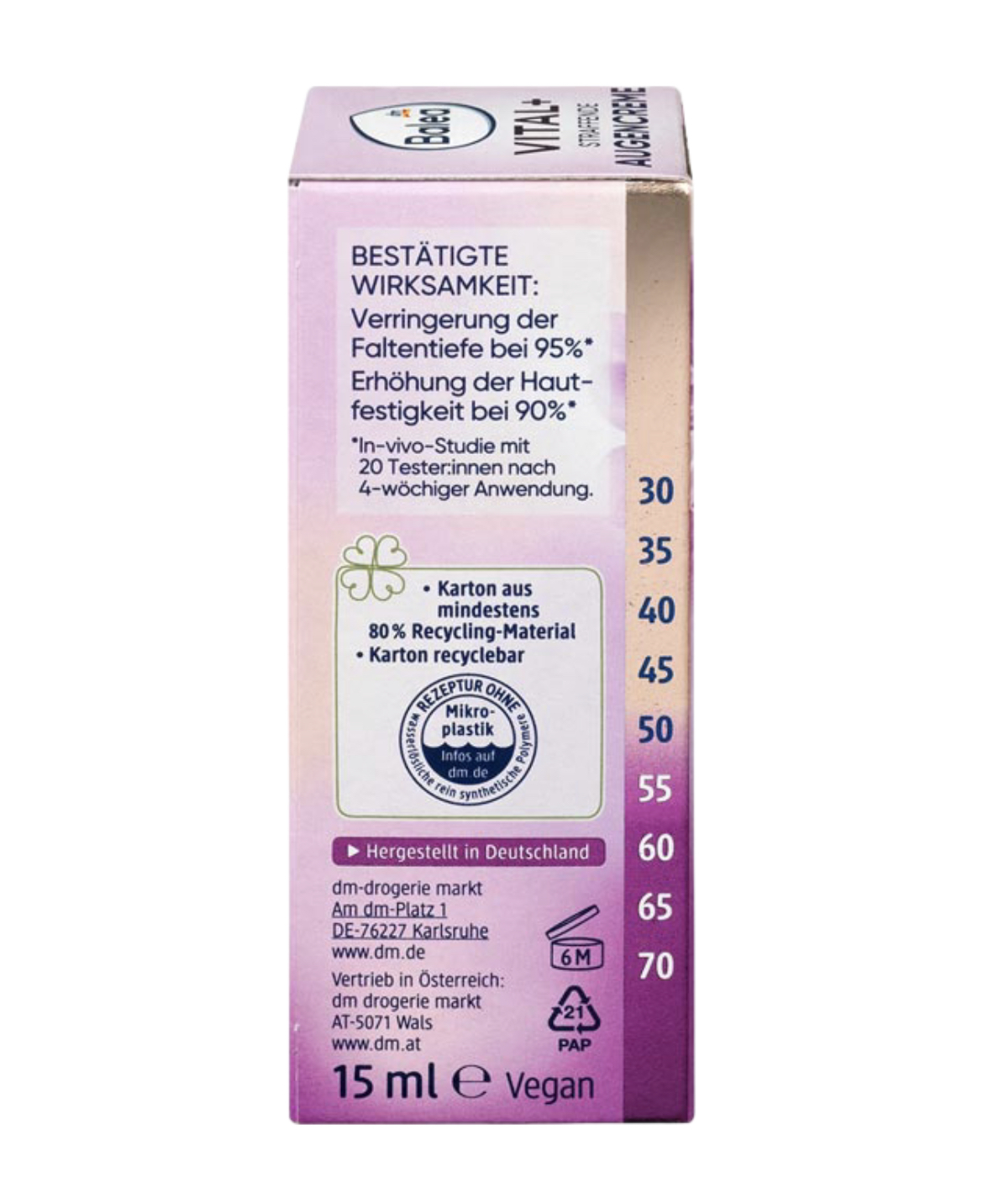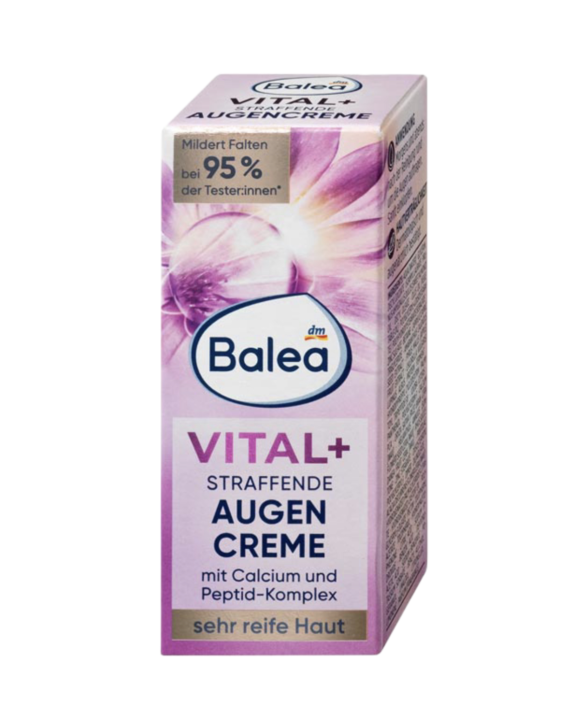 کرم دورچشم ویتال پلاس باله آ به مقاومت و استحکام پوست کمک میکند و ناحیه دور چشم شما را تغذیه و تقویت کرده و باعث خاصیت ارتجاعی پوست می شود.کلسیم موجود در این محصول موجب می شود عملکرد سلول های طبیعی پوست افزایش یافته و مقاومت بیشتری به پوست دهند.