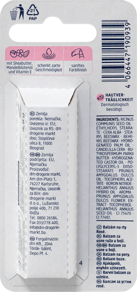 رژ لب Balea به لب های شما رنگی ملایم می بخشد. روغن شکوفه بادام، کره شی و موم زنبور عسل لبهای شما را نرم و لطیف نگه میدارد و از خشک شدن آنها محافظت میکند. دستور العمل بدون میکروپلاستیک و پلیمرهای محلول در آب، کاملا مصنوعی